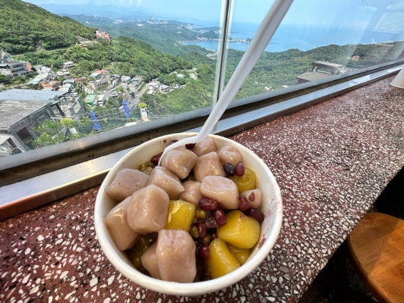 지우펀의 절경을 감상하면서 식사를 할 수 있어요.